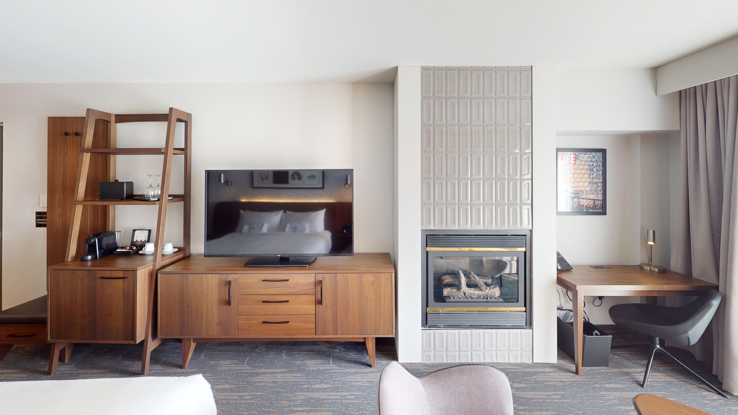 La Panō+ vous offre le lac Memphrémagog à perte de vue, avec le confort supplémentaire d’un foyer pour une ambiance encore plus chaleureuse. Ne manquez rien des époustouflants couchers de soleil sur le lac, bien installé dans un décor lumineux et enveloppant. Pouvant accueillir jusqu’à 4 personnes, cette belle grande chambre munie d’un très grand lit, d’un grand lit escamotable et d’un coin salon vous propose un large panorama sur l’un des plus beaux lacs du Québec.